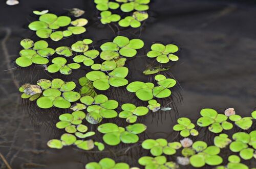 〇萍に花咲きながら流れ行く (うきくさにはなさきながらながれいく) 〇浮草の深泥池を出たがらず 河童三子 〇根なし草集まることを旨として 々 〇萍の字義の一字を縁(よすが)とす 々