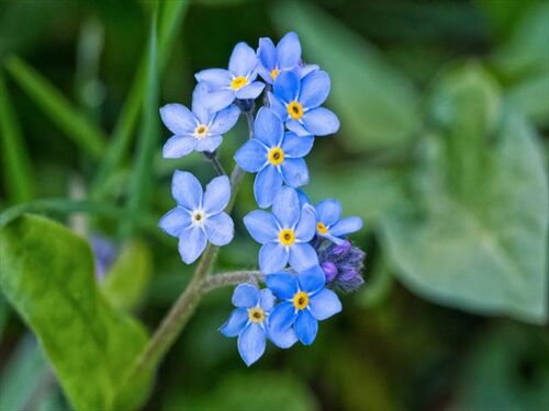 〇な忘れそ勿忘草にささやかる (なわすれそわすれなぐさにささやかる) 〇勿忘草遠い昔の映画かな 河童三子 〇ふり返り吾に教へむ勿忘草 々 〇勿忘草うす水色の寂しさよ 々